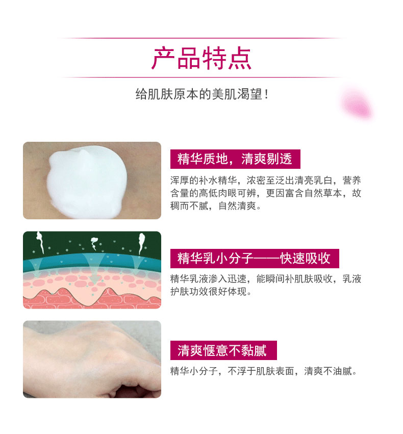 產(chǎn)品作用:補水潤膚、平衡水油、提亮肌膚、緊膚減紋。